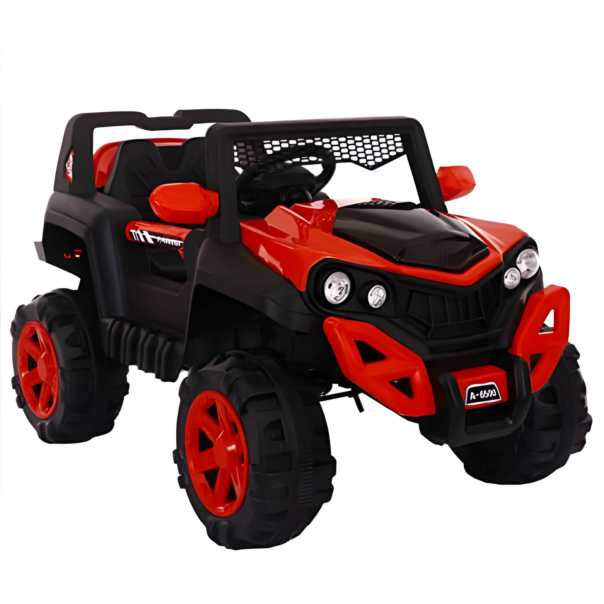 A 6500 Kids Ride on Jeep with 12V Rechargeable Battery, Music, Lights and Remote Control, Red