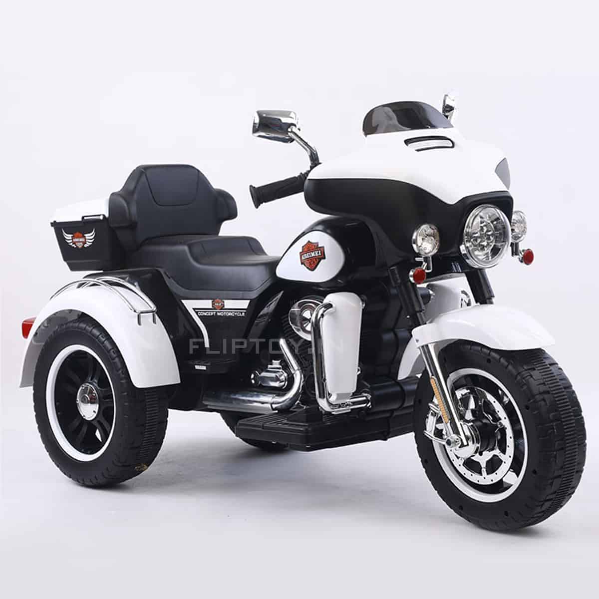The Battery Operated Bike has a Foot accelerator to drive, Mp3 music player, USB Pendrive drive support, powerful battery backup, Kids small toys storage in the backside, LED headlight, backlight, Horn, 2 powerful motor'sLoad capacity:
