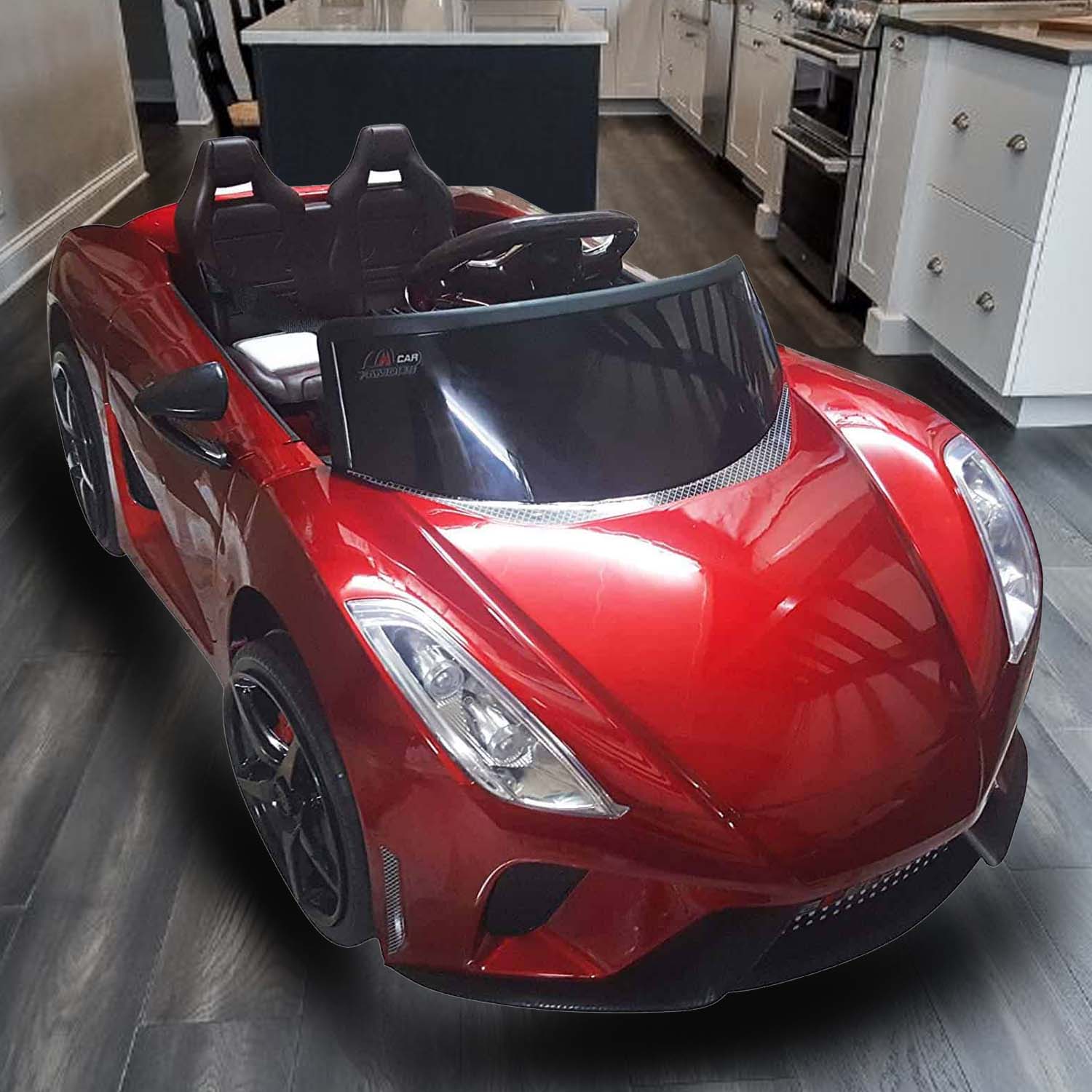 Battery Operated Large Sports Look Car Remote Control Ride-On with Power Button Start, AUX Port Light Music for Kids (Red)