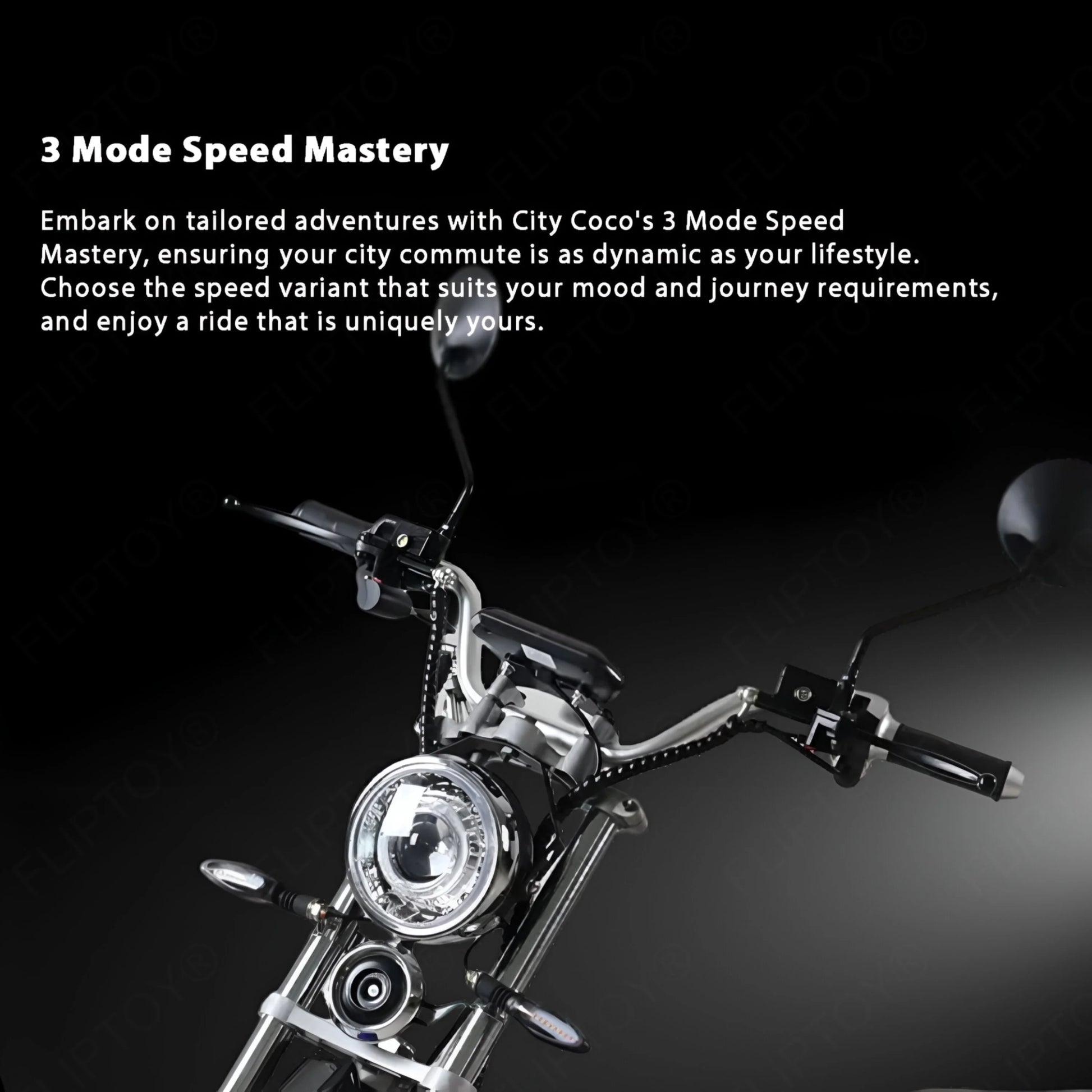 Experience the versatility of City Coco Electric Scooter as it unleashes 3 speed modes for you to explore the city with ease. From navigating crowded streets to cruising on open roads, these speed variants adapt to your surroundings, providing a versatile and dynamic city commuting experience.