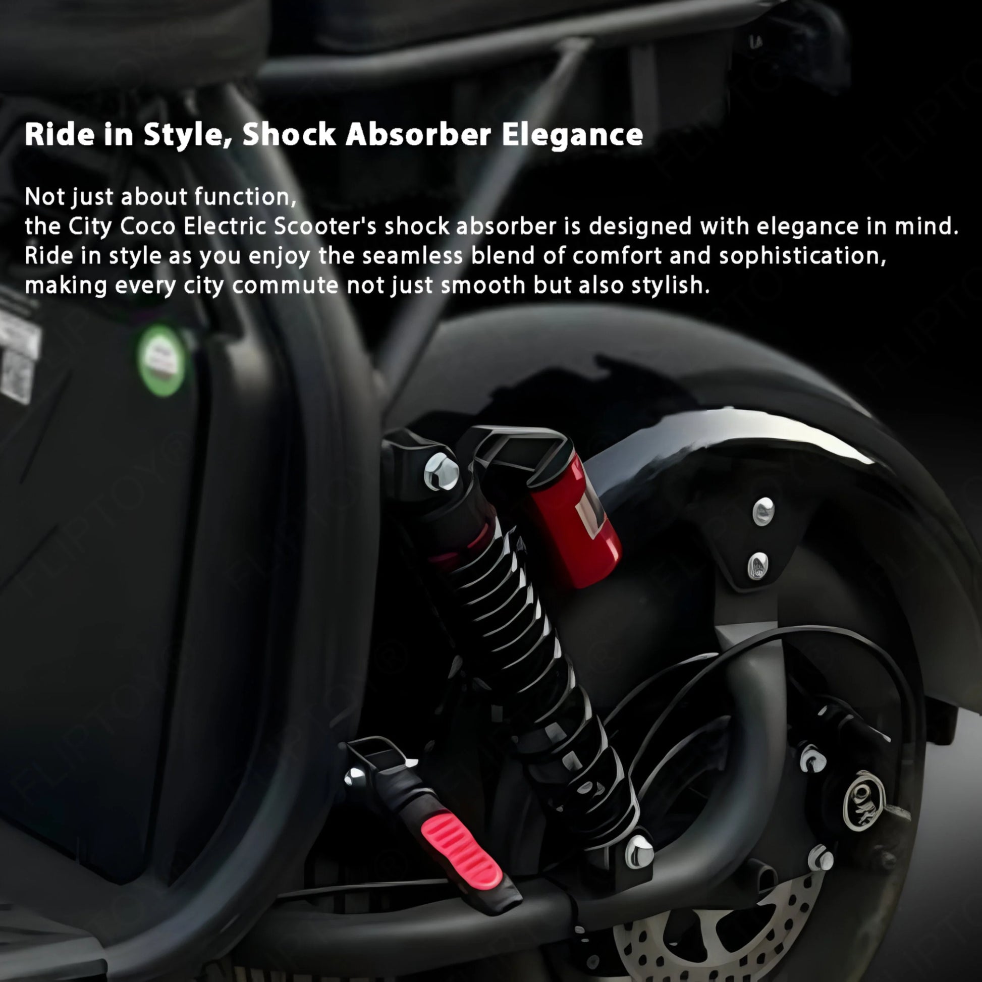 Master the art of smooth cruising with the City Coco Electric Scooter's oil shock absorber excellence. Say goodbye to discomfort and hello to a ride that glides effortlessly over various surfaces, providing you with the comfort you deserve on every city journey.