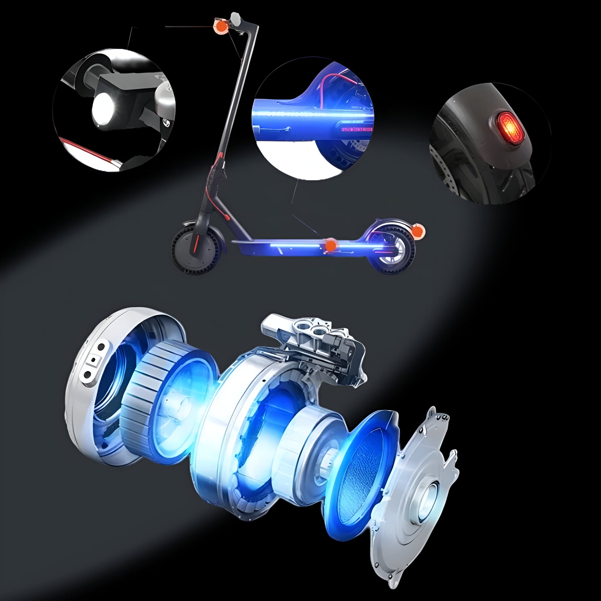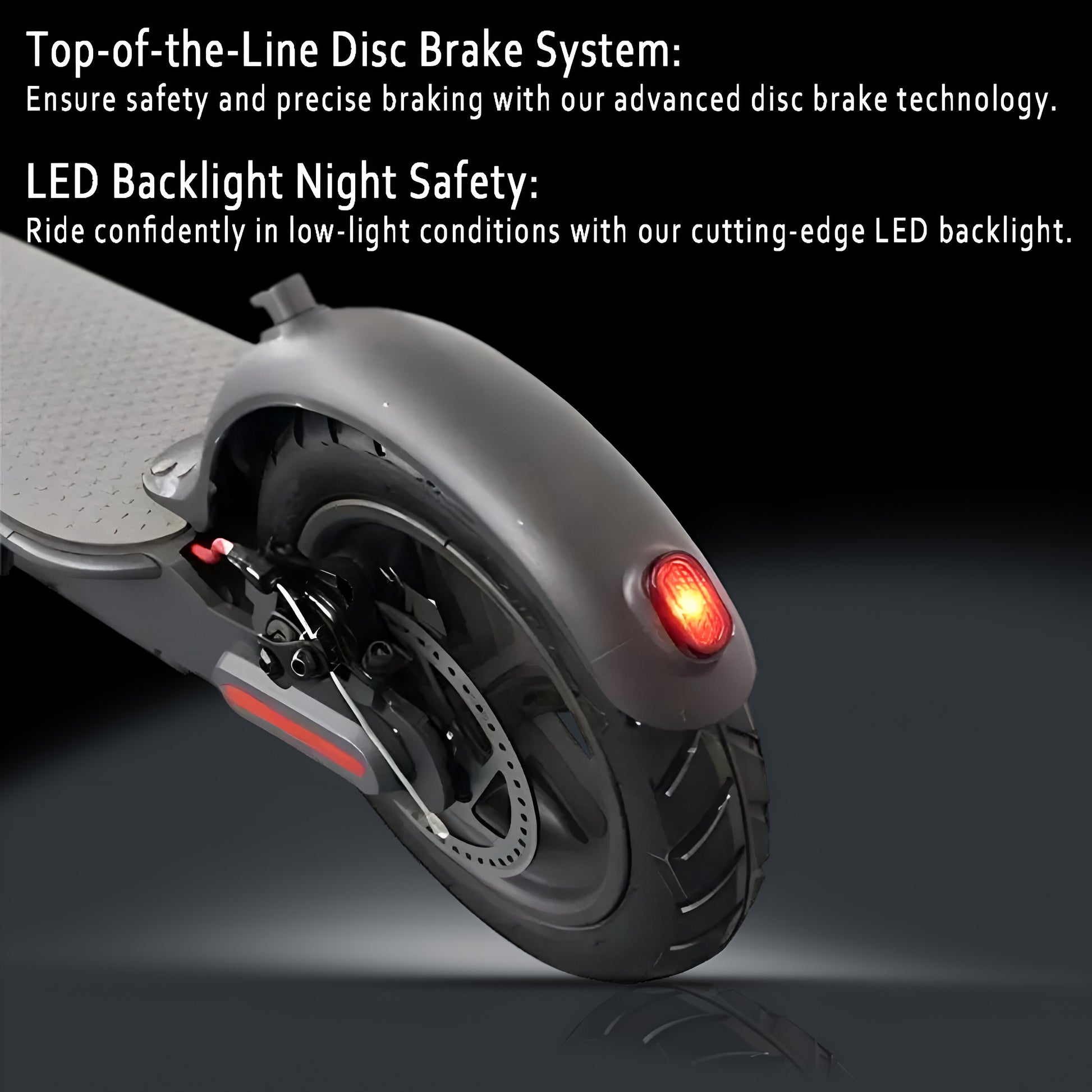 Prioritize your safety without sacrificing style with our electric foldable scooter. Explore the cityscape confidently with advanced safety features, including responsive braking systems and durable construction. Illuminate your path with integrated LED lights, ensuring visibility during nighttime rides. The scooter's intuitive controls provide a user-friendly experience, making it suitable for riders of all skill levels. Elevate your commuting experience by embracing cutting-edge technology designed to keep you secure and in control.