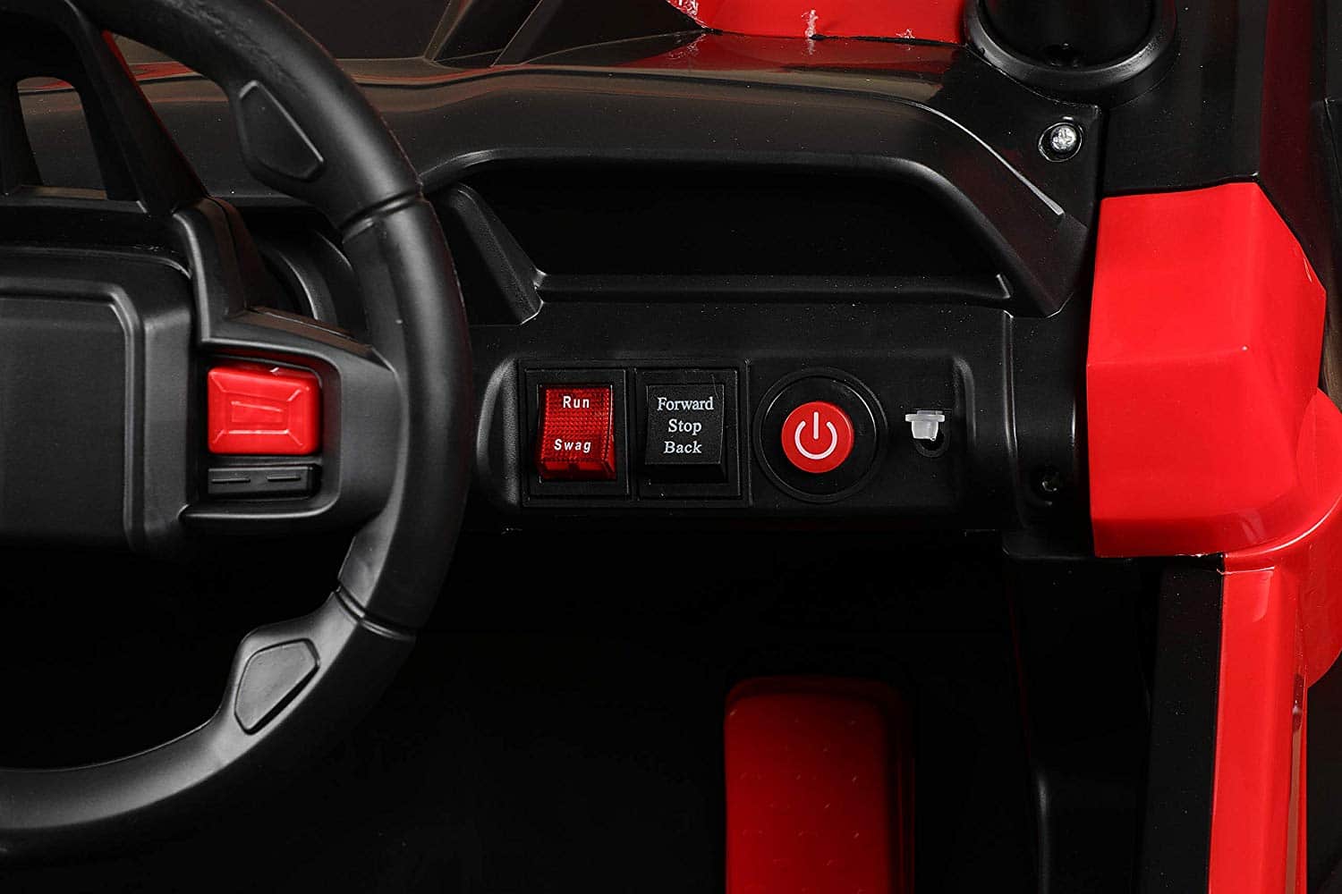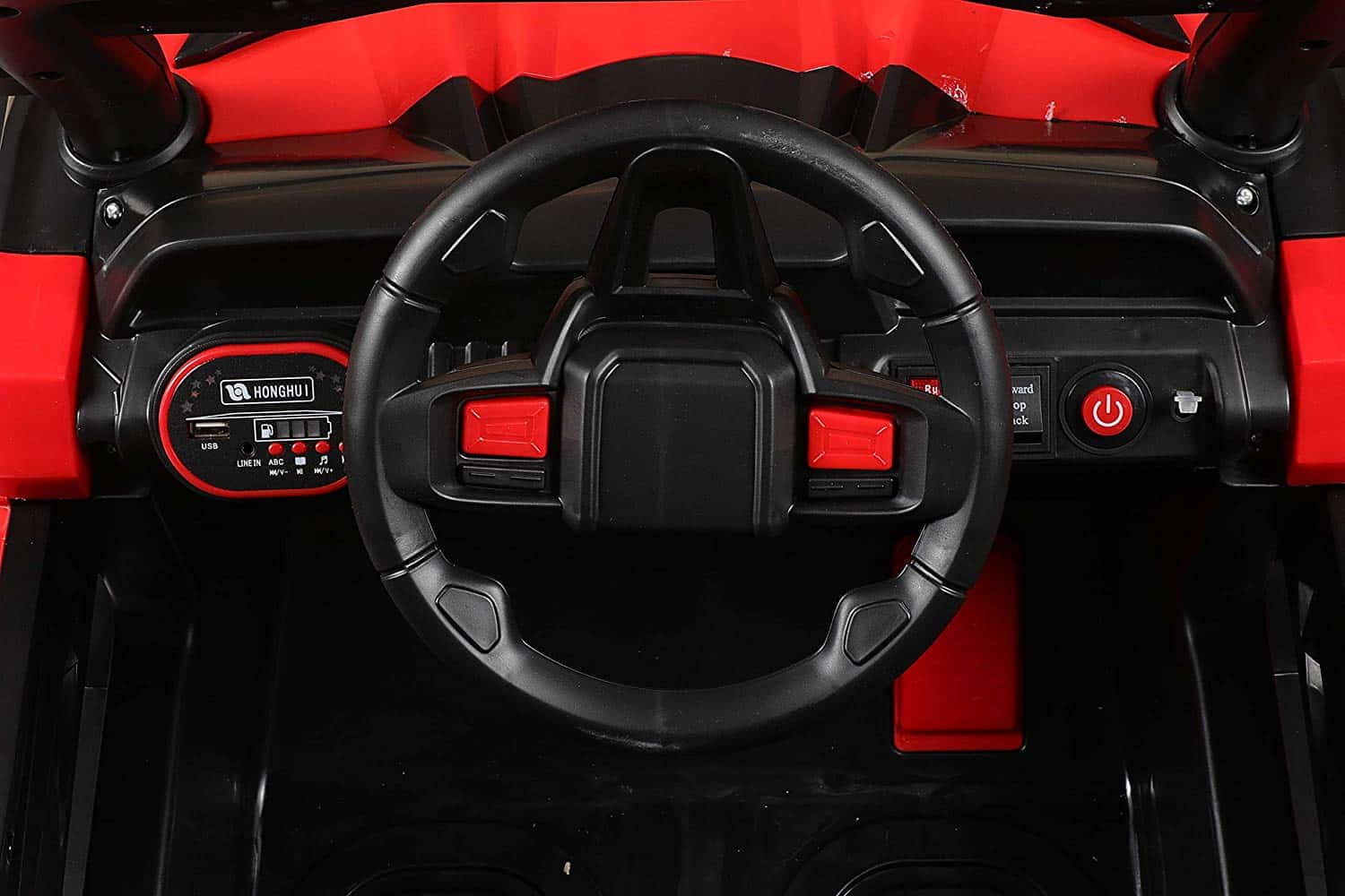 909 Ride on Jeep is Powered with 2x6v Battery and Double Motor. It Runs for 1-1.25hrs After Full Charge and Runs at a Speed of 4-5km/hr.Features