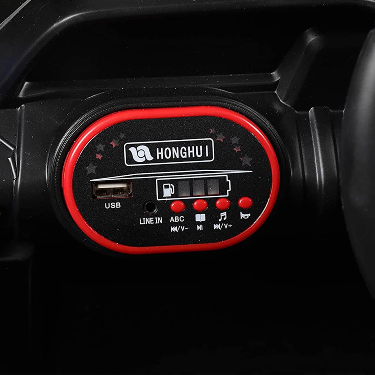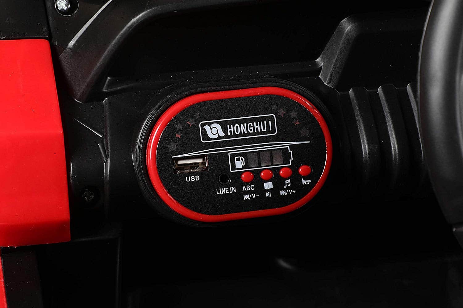 It comes with Music System Compatible with Aux, Pen drive and Some Inbuilt Songs: Working Front and Back Lights.Kids can Ride it manually