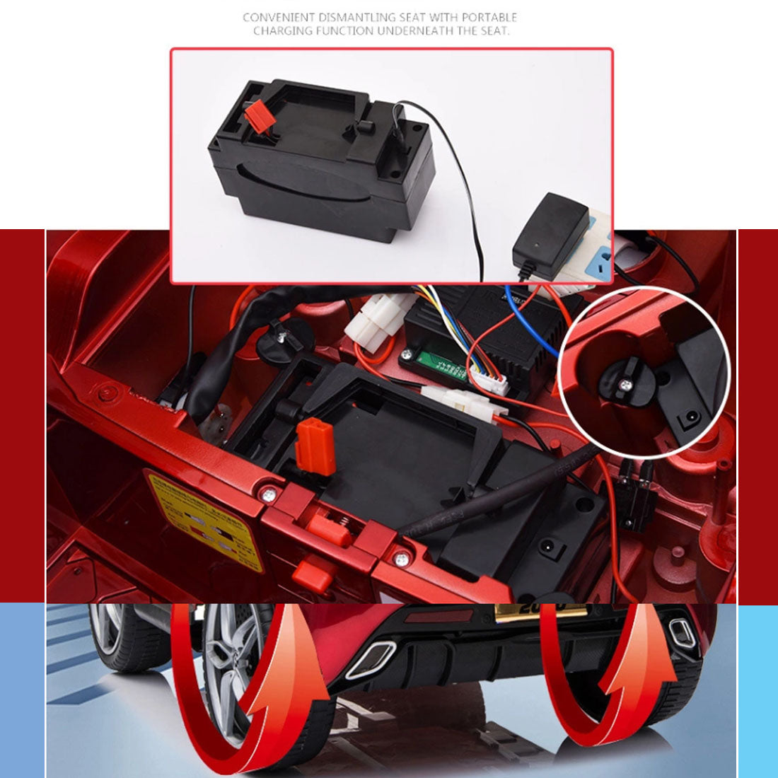 car is simple for your child to drive under adult supervision or for the parents to operate by remote control. It is 2.4g r/c battery operated with 2x6.4v (double) motor for double the fun. Suspension function to controll the vibration. Has led headlights, rear lights with a hi-fi dashboard with exciting car sound effects, one key start, forward/backward movement and fancy lights for extra style and that your child will love