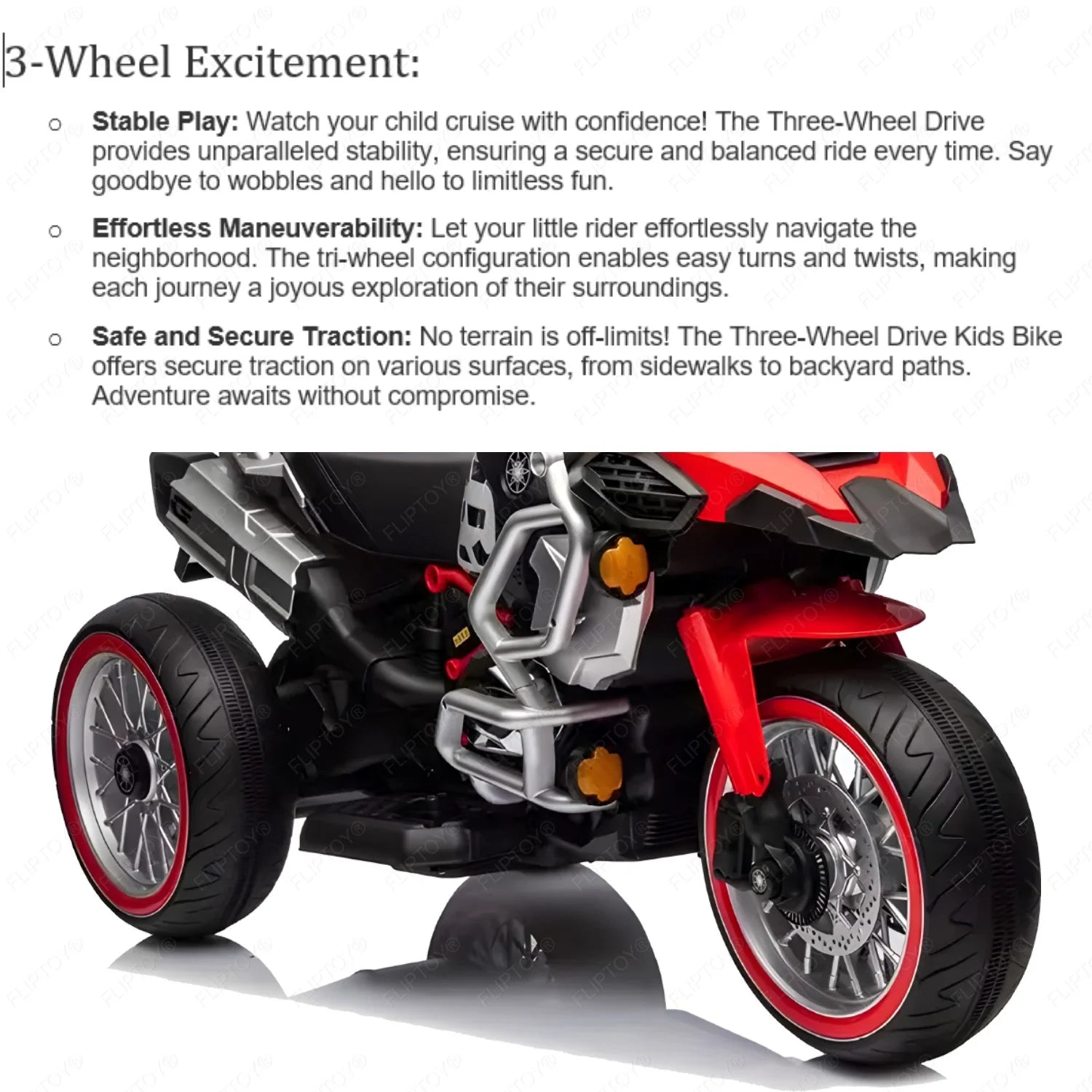 Safety is our top priority. The bike features a stable 3-wheel design, providing optimal balance for young riders. Powered by a reliable 12V battery, it ensures a smooth and controlled ride every time. Give yourself peace of mind as your kids embark on their biking adventures.