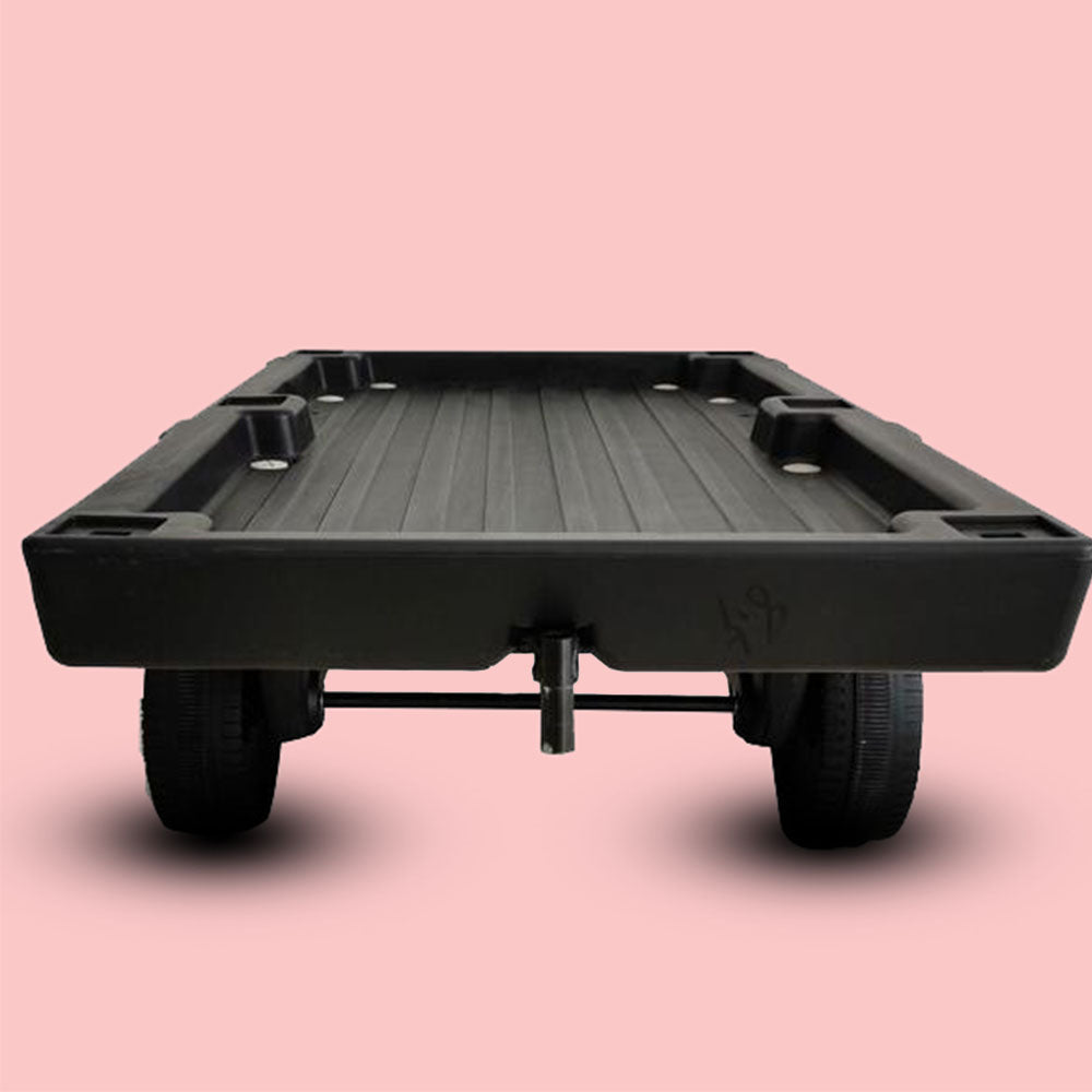 it supports up to 55 kg on smooth, flat surfaces Presenting our Heavy Duty Carrier Truck Strong wheels and body, it is convenient to carry where ever you go. A smooth and perfect ride on for your toddlers. Elagant - attractive design, durable virgin PVC Plastic body, strong back support with parental push handle features. supper storage box under seat.Designed for utmost comfort of the baby with optimum height and round edges so as not to cause any injury to the kid. Comfortable seat with strong body support. Easy to ride, with sound and smooth seating arrangement. Available in attractive colors. Also supports maximum weight balance upto 60Kg.Material: