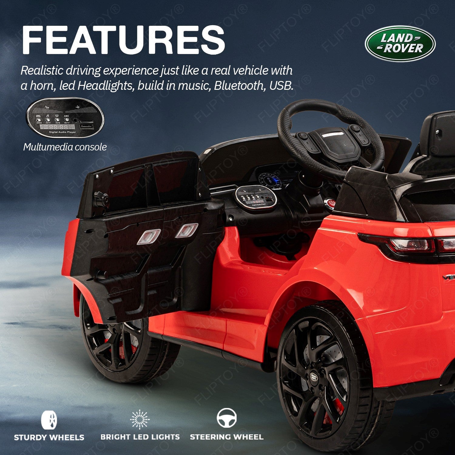 - The Licensed Land Rover Ride on Car, Toys are designed to provide a safe and enjoyable driving experience for your child. With a parent remote control, you can ensure that your child stays on the right track, and the sturdy construction ensures that the car is safe for your child to ride on. The car is also equipped with LED lights that make it visible in low-light conditions, and the music feature adds an extra element of fun to your child's driving experience.