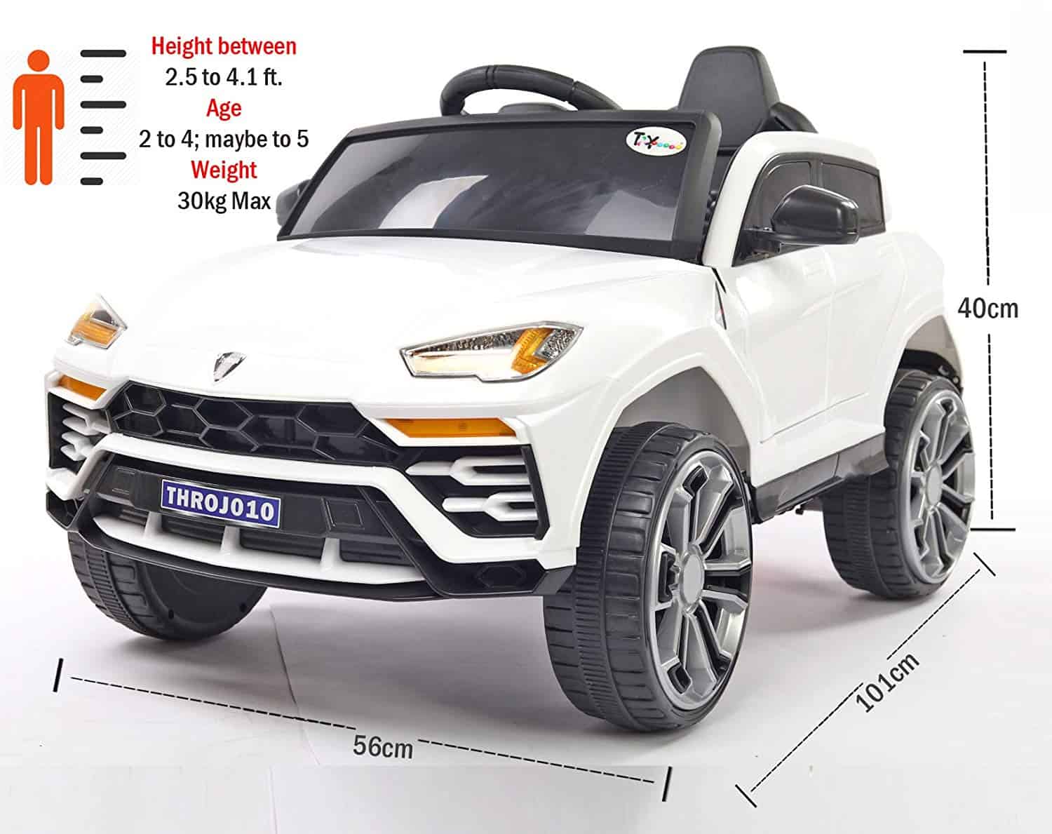 - This lambro SUV battery ride-on car by Toyhouse is safe and easy to operate that can be used on any hard surface and lets your child build a happy memory. Our kids’ cars/kids’ bikes are made from the most durable plastics giving your kid a smooth and enjoyable ride. Toyhouse offers a variety of baby ride cars, kids motorcycles, atv’s, go-karts and other rechargeable battery powered bikes/cards for kids from 2 to 5 years old. With the best features, ease of use, and durable body construction, they provide miles of enjoyment for your kids. Important: avoid buying counterfeit products and transacting with unauthorized sellers. Look for our logo on the packaging for every product. Toyhouse is committed to provide the consumer with absolute reasonable price and value on its entire range of products with rigorous quality control process safe and durable: Toyhouse makes kids ride on car toys that are not only entertaining but also safe. All ride-on toys are en71 certified which is defined by stringent European standards and hence Devoid of banned phthalates. The kids cars/kids’ bike are also BIS certified which is defined by Indian Standards. Easy to ride: this lambro SUV ride-on toy for kids is simple for your child to drive under adult supervision or for the parents to operate by remote control. It is 2.4G Bluetooth r/C rechargeable battery-operated car with 2*6v double battery, the double motor for double the fun. It comes with advanced slow start function and exciting electronic car sound effects with sound controls, an inbuilt usb/TF card input drive to play music/MP3, forward/backward, high/ low-speed movement. Use it anywhere: all you need is a smooth, flat surface to have your child on the move with this toy car. It is perfect for both outdoor and indoor playing with 4-wheel shock absorbers, non-skid tires, seat belt, led headlights, rear lights with a hi-fi dashboard, a super cool door-opening style features and a next-generation digital power display that your child will fall in love with. Product details: this lambro SUV ride-on toy car is easy to clean. Assembly Required. Suitable for kids between 2 to 5 years of age and has a maximum weight capacity of 30kgs. Charge the battery according to the included instruction manual.(Stickers on the product may vary). Avoid buying counterfeit products and transacting with unauthorized sellers. Look for our logo on the packaging for every product. Toyhouse is committed to provide the consumer with absolute reasonable price and value on its entire range of products with rigorous quality control process.